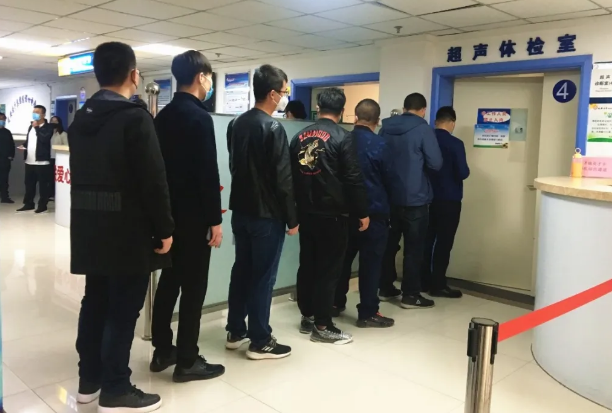 公司員工有序排隊(duì)進(jìn)行超聲體檢