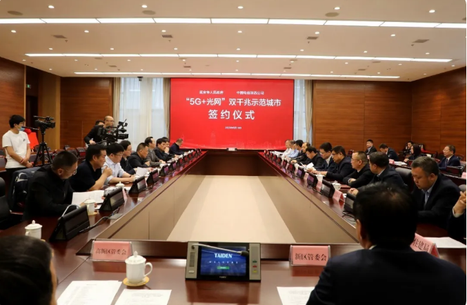 延安市政府副市長王軍營與中國電信陜西公司副總經(jīng)理李延平代表雙方簽訂“5G+光網(wǎng)” 雙千兆示范城市戰(zhàn)略合作框架協(xié)議。