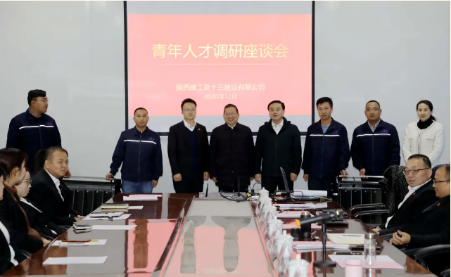 陜建十三建公司領(lǐng)導(dǎo)班子,各部室、各單位負(fù)責(zé)人,青年人才代表等40余人參加了座談。