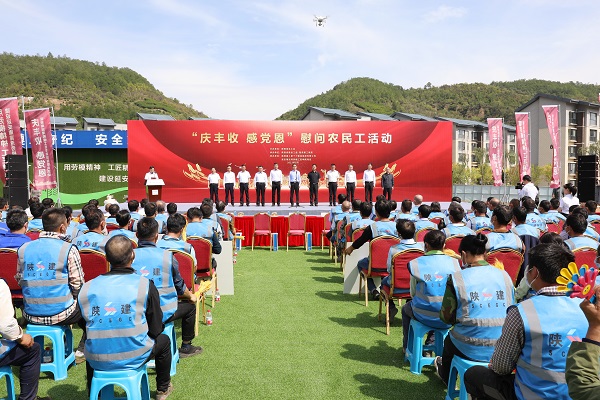 在第四個“中國農(nóng)民豐收節(jié)”到來之際,9月22日,陜西省總工會走進陜建十三建集團延安南泥灣勞模工匠學院項目,開展“慶豐收、感黨恩”慰問農(nóng)民工活動。