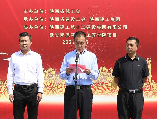 陜西建工集團黨委常委、副總經(jīng)理劉小強在致辭中表示陜建作為我省最大的國企建筑鐵軍,在省委、省政府的領(lǐng)導下,在70余年的發(fā)展長河中,建設(shè)了一大批國防、科教、文衛(wèi)、公共服務等重點項目,積極服務于陜西發(fā)展和國家建設(shè),既有深厚的文化積淀,又有雄厚的綜合實力。有幸承建延安南泥灣勞模工匠學院這個重點項目,我們倍感榮幸,倍加珍惜。我們已將該項目列為十三建集團的“一號工程”,調(diào)集精兵強將,以“出手必須出彩,完成必須完美”的作風、“開局就是決戰(zhàn),起步就是沖刺”的魄力,“努力到無能為力,拼搏到感動自己”韌勁,科學合理、協(xié)調(diào)高效的管理模式,將項目建設(shè)成為優(yōu)質(zhì)結(jié)構(gòu)工程、綠色施工示范工程,爭創(chuàng)魯班獎,為省總工會交上一份滿意的“答卷”。