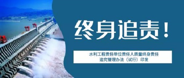 為加強水利工程質(zhì)量管理,強化質(zhì)量終身責任,提高質(zhì)量責任意識,保證水利工程建設質(zhì)量,水利部組織編制了《水利工程責任單位責任人質(zhì)量終身責任追究管理辦法(試行)》(以下簡稱《辦法》),強調(diào)水利工程質(zhì)量終身責任管理實行書面承諾和竣工后永久性標識等制度。
