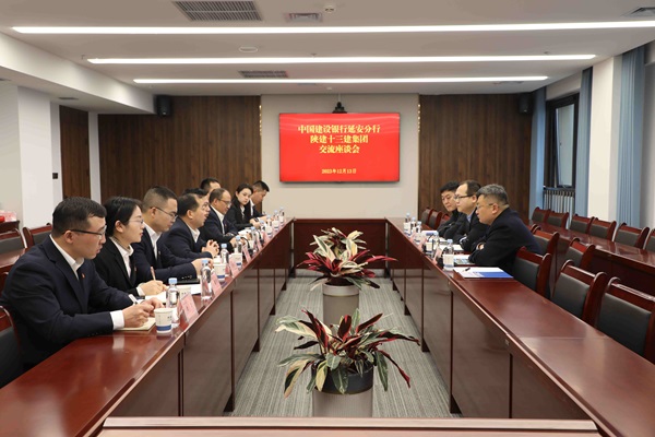 12月13日,集團與建行延安分行座談交流。中國建設銀行延安分行黨委書記康遙,集團黨委副書記、總經理楊永宏參加座談。