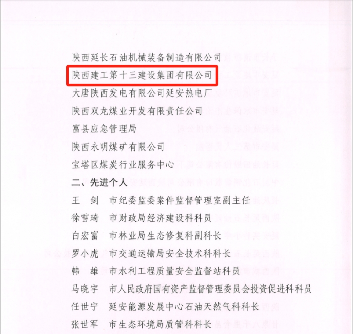 近日,延安市安全生產委員會表彰了2022年全市安全生產工作先進集體和先進個人,陜建十三建集團獲評延安市安全生產先進集體,這是集團連續(xù)四年榮獲全市安全生產先進集體表彰。