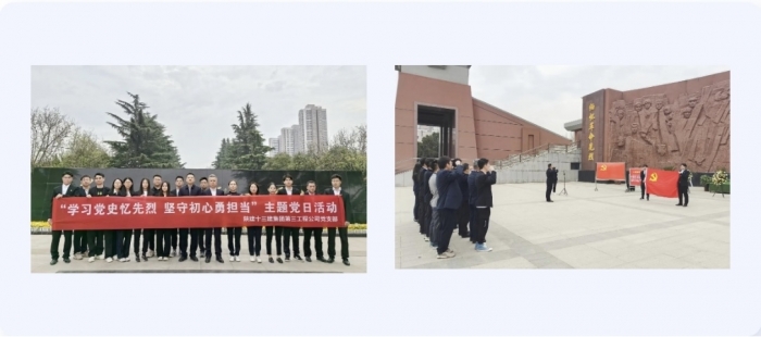 3月29日-4月3日,陜建十三建集團各單位積極組織黨員干部職工開展“學(xué)習(xí)黨史憶先烈·堅守初心勇?lián)?dāng)”清明節(jié)主題黨日活動,旨在銘記歷史,緬懷先烈,激勵大家勇于擔(dān)當(dāng)、奮進前行,助推企業(yè)高質(zhì)量發(fā)展!