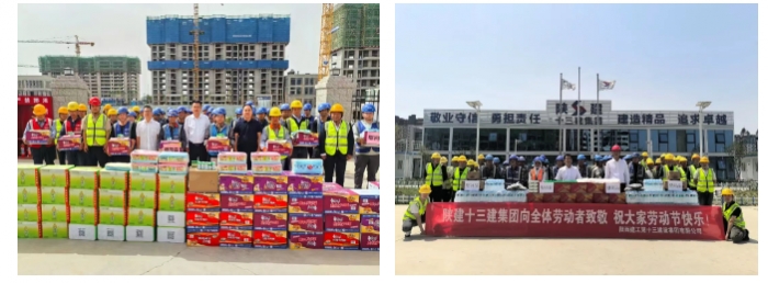 “五一”期間,集團(tuán)深入大荔同州府邸住宅區(qū)、邯鄲匯寶康城一期(D,E)區(qū)等重點(diǎn)建設(shè)項(xiàng)目慰問節(jié)日期間堅(jiān)守崗位的一線員工,向奮戰(zhàn)在項(xiàng)目一線的全體勞動者致以節(jié)日的問候和崇高的敬意,為他們送去綠豆、冰糖、藿香正氣水、飲料、方便面等慰問品。