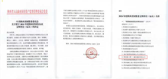 近日,中共陜西省國(guó)資委委員會(huì)印發(fā)關(guān)于授予2024年度陜西省國(guó)有企業(yè)文明單位(標(biāo)兵)的決定,集團(tuán)獲評(píng)“陜西省國(guó)資委文明單位標(biāo)兵”。